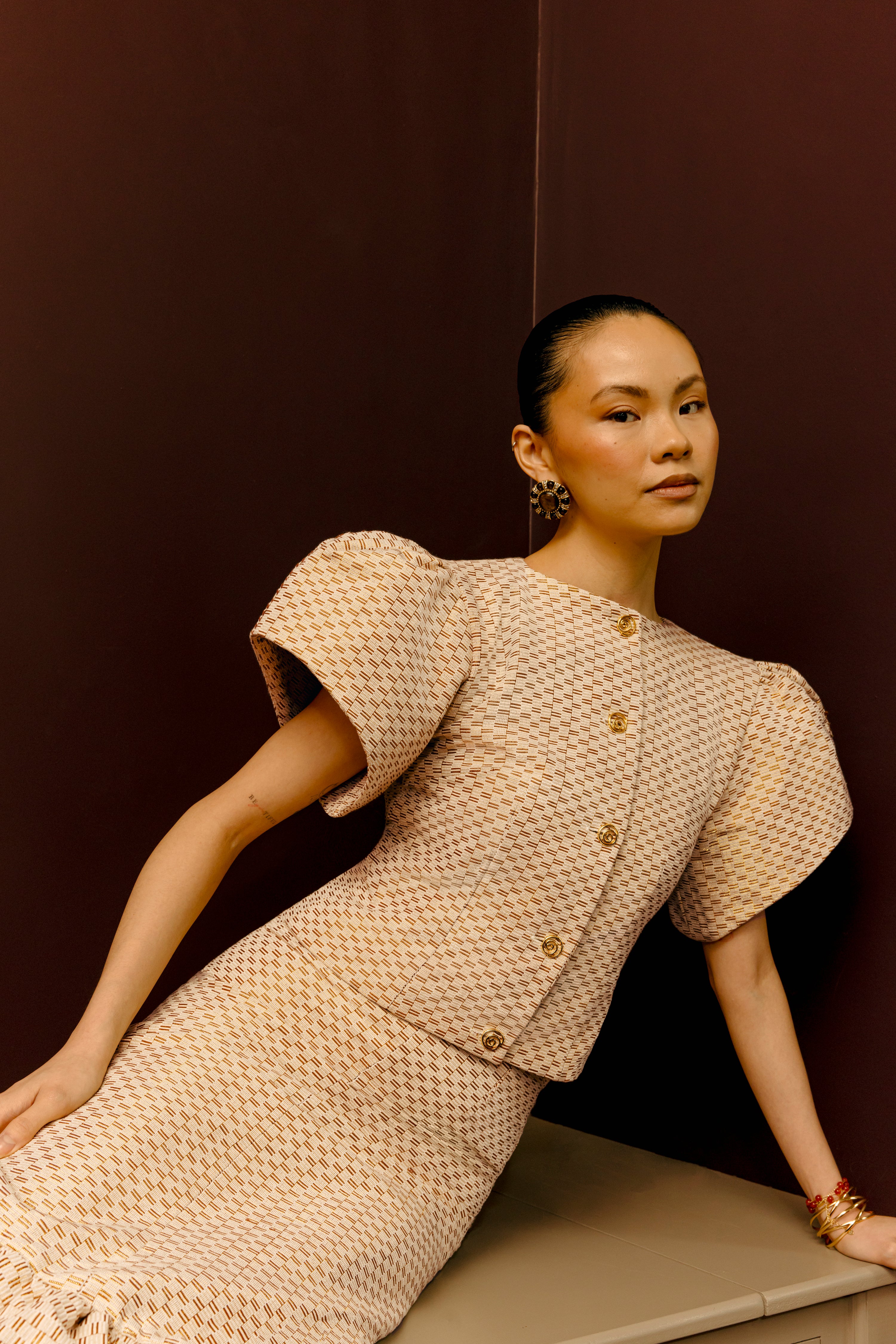 Brown Ano Woven Cropped Top