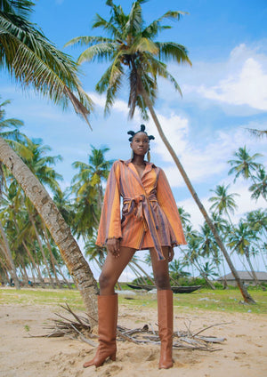 Celebrate the artistry and craftsmanship of female artisans with the Aya Dress, made from 100% handwoven cotton fabric known as Faso Dan Fani. This signature fabric embodies tradition, quality, and elegance, making the Aya Dress a timeless addition to your wardrobe.