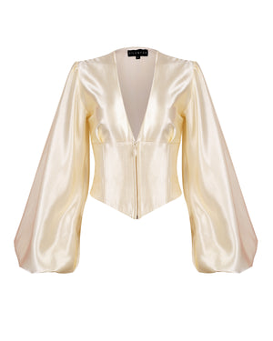 Introducing our Cream Silk Joyo Corset Top, a luxurious addition to your wardrobe that combines timeless elegance with modern sophistication.