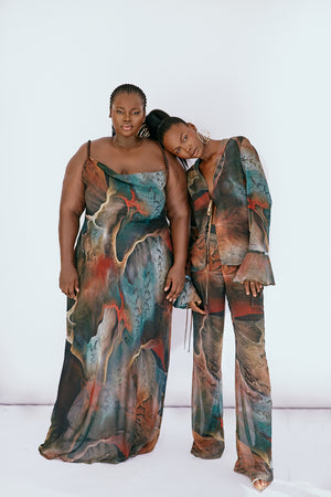 - Printed Chiffon in Earthly Tones: Delight in the beauty of nature with the multicolored chiffon print, inspired by the earth's hues and textures, adding a refreshing and organic feel to your ensemble.