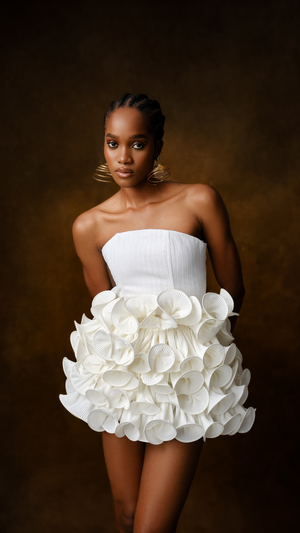 Skilfully made from handwoven cotton, the Ase top features a structured bodice with meticulous ribbing detail that creates a striking silhouette. For a complete statement look, pair with the matching Ase ruffle skirt.