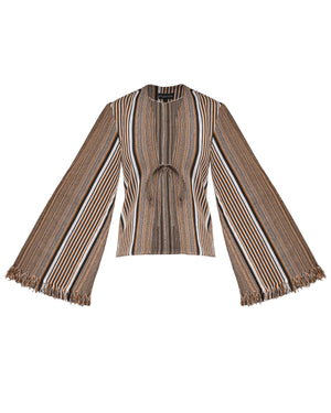 Made from handwoven cotton, the Aya Meje Top brings artisanal charm to statement dressing. Dramatic bell sleeves with frayed hems and the single-tie front fastening allows you to adjust the fit. Available in Red or bold stripe options, this top transitions effortlessly between casual and elevated looks.