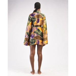 Step into the world of abstract art and lockdown craftsmanship with our Asa Printed Shirt Dress. Crafted from luxurious silk blend fabric, this oversized dress shirt features a unique print made from a painted collage, showcasing our founder's visionary creativity.
