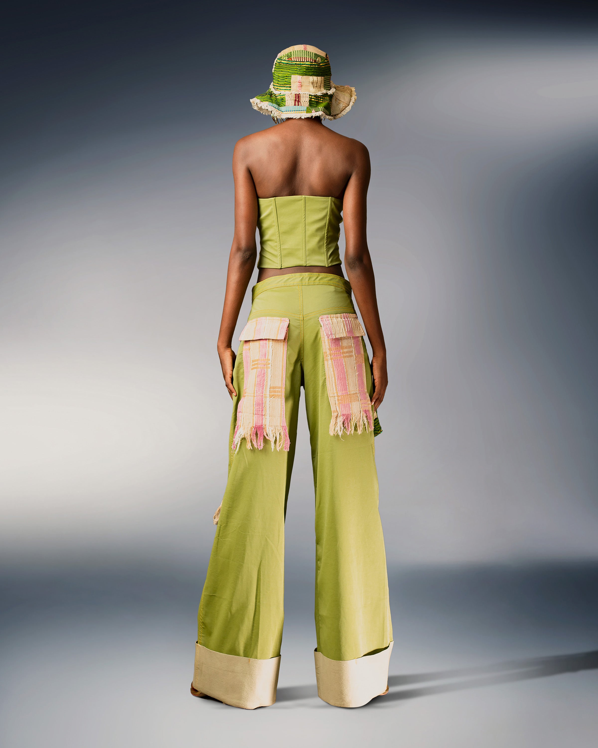 Made with a mixture of ceremonial 1920s-1970s vintage aso oke sourced from Ogun state, the Tola corset has been reimagined and repurposed to create a new corset design. Pair with the Tola Pants for a complete look.