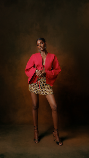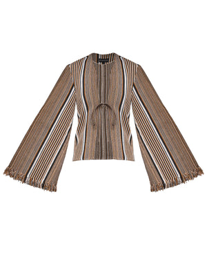 Made with Hand woven cotton and featuring dramatic bell sleeves with frayed hems, the Aya Meje Top offers a touch of texture and artisanal charm. The unique single-tie fastening creates a flattering, adjustable fit, making it a versatile addition to your wardrobe. Available in two stunning colour options—classic off-white or a bold striped pattern—the Aya Meje Top is perfect for elevating both casual and formal outfits.