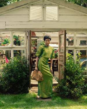 The Green Oyin Crop Top embodies quiet strength and refined elegance. Woven by hand in from organic cotton blended with silk threads, the crop jacket offers a sheen and textured depth. Featuring Kilentar’s signature gold spiral buttons, it’s perfectly structured to elevate both matching pieces and minimalist essentials alike.