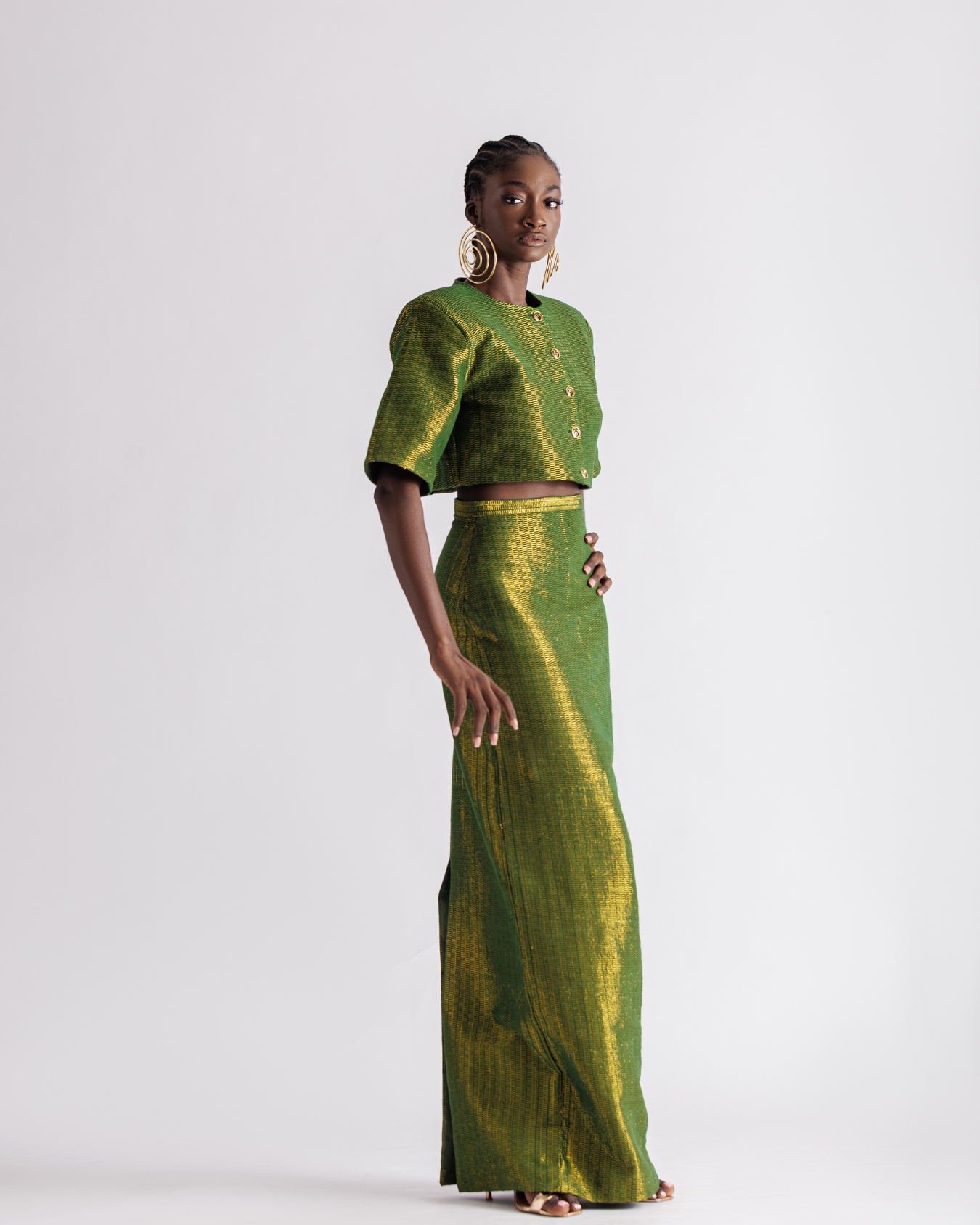 Pair it with the matching Green Oyin Crop Top for a striking coordinated look, or style solo with neutral knits or breezy blouses.